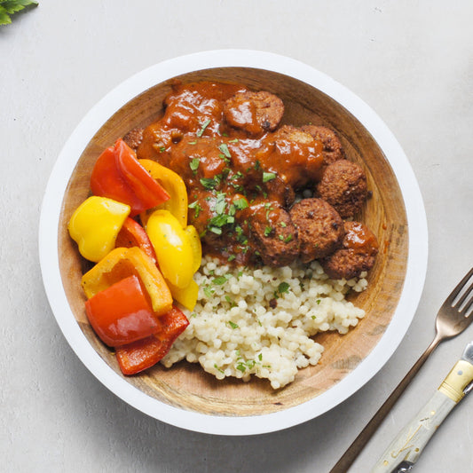 Falafel Tajine met Geroosterde Paprika en Parelcouscous
